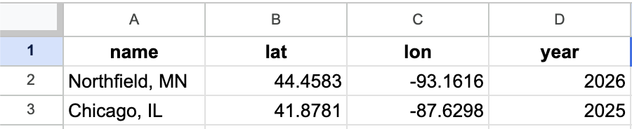 If you have humanities data that includes locations, like sites of photos, landmarks from a project, event locations, or places tied to archival materials, you can map it quickly in RStudio using R’s spatial tools. This workflow is useful in Digital Arts & Humanities because it turns a simple spreadsheet into a reproducible map you can update anytime.